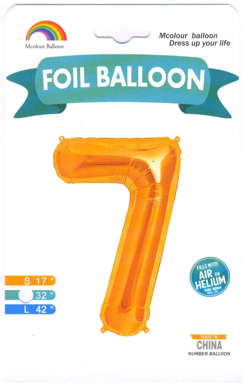Кулька в упаковці "7" Колір: золото. Розмір: 32"(80см). Материал: Фольга.